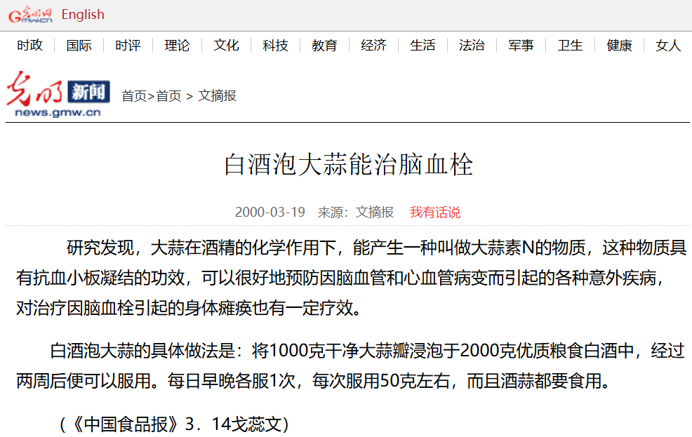 现在倒好,斯基想活到80岁不血栓,可能只能用五粮液泡大蒜了。