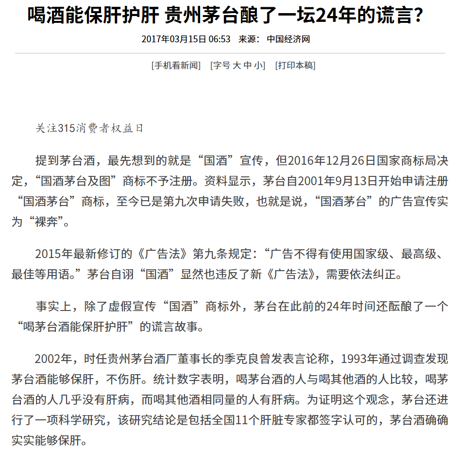 2009年,当年五粮液集团的老大就出来开炮,说茅子宣传保肝护肝不道德,整得茅子像保健品似的。