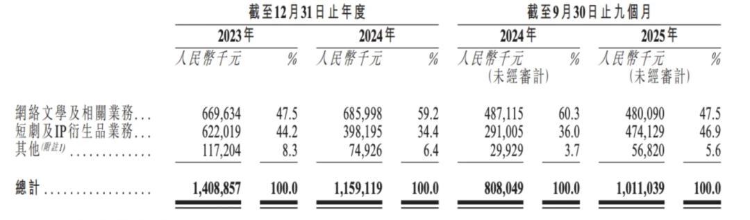 2025年前九个月网络文学及短剧两大核心业务收入占比达94.4%,任何一项业务的波动都将对整体经营造成重大影响,这也成为其业绩持续下滑的重要隐患。