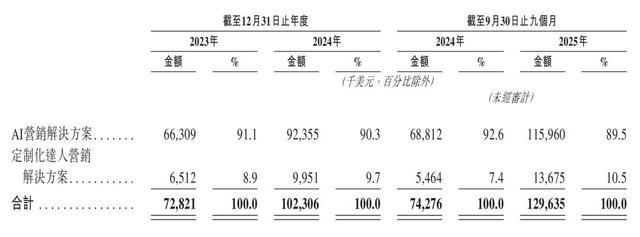 钛动科技的商业模式围绕两大互补的解决方案体系构建:AI营销解决方案及定制化达人营销解决方案。