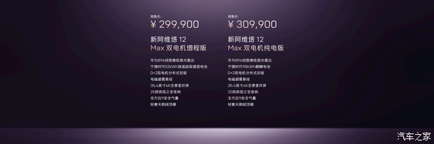 [汽车之家资讯]3月20日,新款阿维塔12开启预售,共计推出7款车型,预售价为29.99-43.99万元,新款车型重点对配置与动力进行升级。新车定位为一款中大型车,采用增程和纯电驱动,搭载太行智控2.0技术和华为乾崑新一代双光路图像级激光雷达。