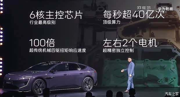 动力方面,新款阿维塔12将升级采用太行智控2.0技术,核心在于搭载太行分布式电驱、电磁避震两大硬核技术。太行分布式电驱独立驱动左右车轮,转速、扭矩大小及方向独立调控,实现车身精准主动控制。电磁避震技术通过全段阻尼无级调整,不仅能够大大提升车辆在连续不平路面上的行驶稳定性与驾乘舒适性,还让车辆在高速转向、高速飞坡等场景中拥有姿态控制力,兼顾舒适性与操控性。该技术采用前双叉臂后多连杆+智能空气悬架+CDC动态阻尼减振器,双电机左右布置,当车身出现打滑时,左轮打滑右轮补,右轮打滑左轮补,动力和底盘跨域融合。阿维塔12搭载太行双电机后驱0-100km/h加速时间<5s,太行三电机四驱版0-100km/h加速时间<3s。太行智控2.0技术还可以在220公里/小时的极限速度下,爆胎不失控
